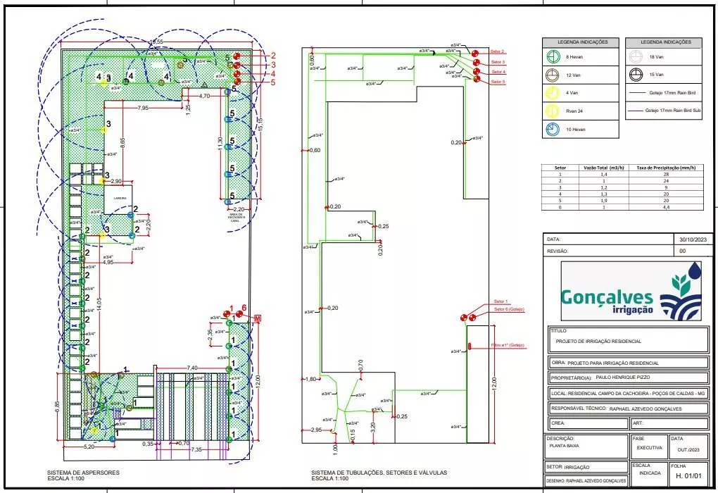 R. Sim, faz locação, setoriza e fornece dados hidráulicos para dimensionamento do conj. motobomba.